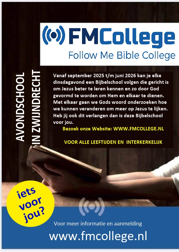 Kom zondagochtend om 10:00 uur naar onze eredienst.